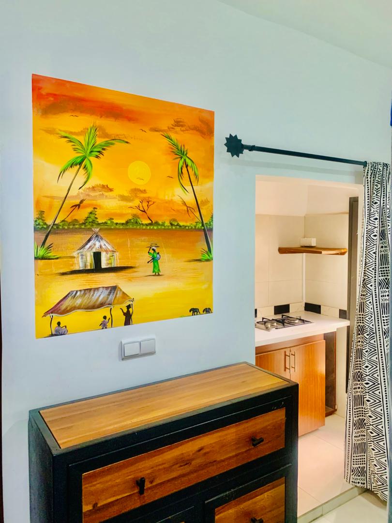 Les murs décorés de fresques artistiques apportent une touche authentique qui reflète à la fois le Sénégal chaleureux et l’élégance française : un mélange subtil, rare et absolument charmant.